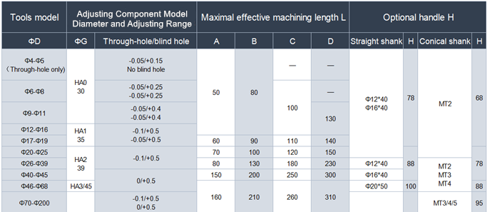 processing diameter overΦ40, as outer diameter of adjusting component is smaller than processed hole diam