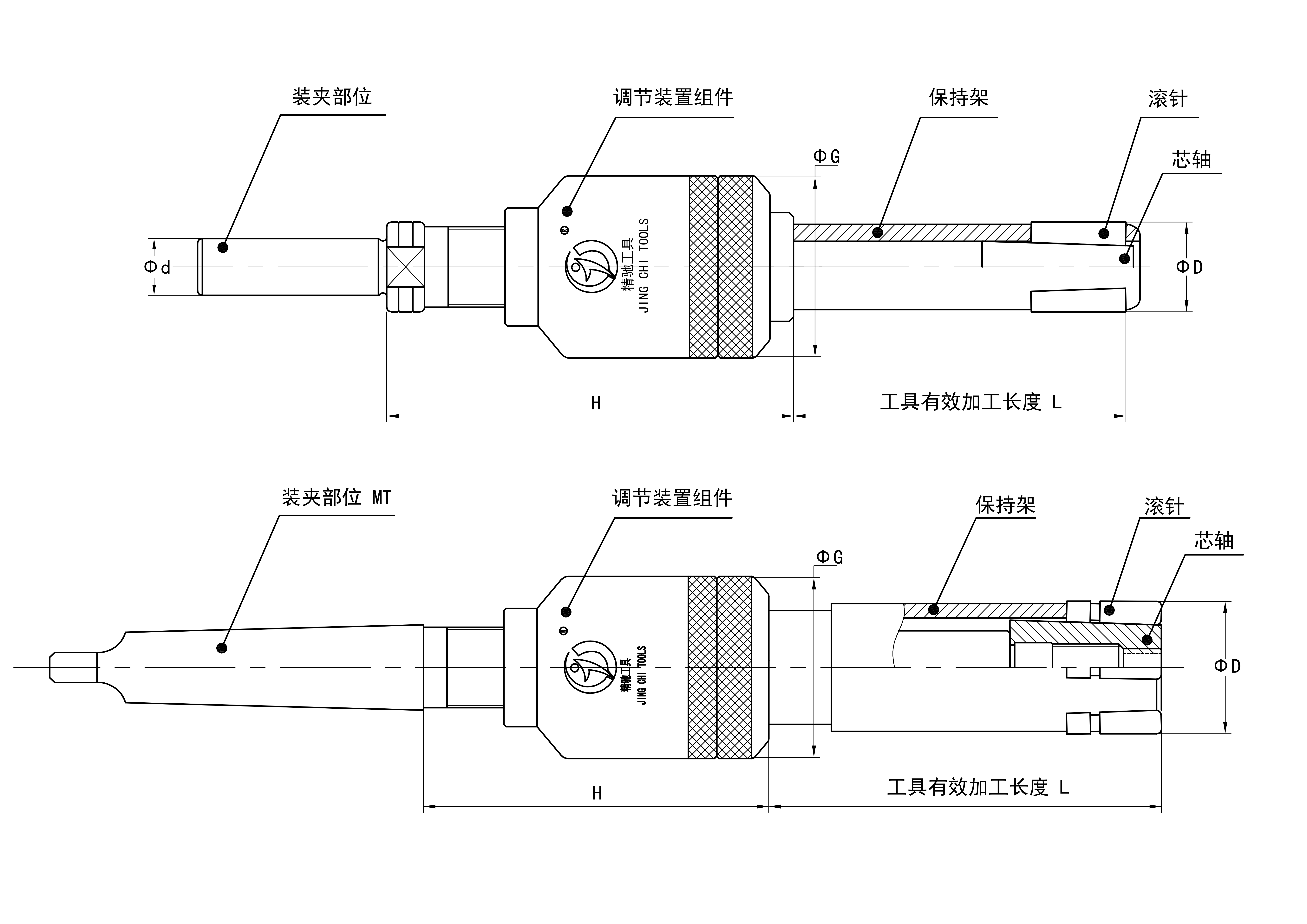 注:孔徑Φ26-68的滾壓刀有效加工長度從B檔開始柄部標配MT3,如需其他型號規(guī)格需定做。加工孔徑Φ40以上的滾壓刀,由于調節(jié)組件的外徑比加工孔徑小,可通過加長柄部尺寸的方法增加加工長度。