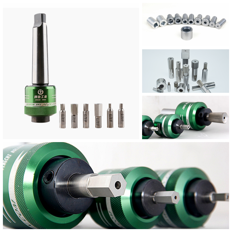 旋轉(zhuǎn)沖削工具是通過刀具的旋轉(zhuǎn)轉(zhuǎn)化為切削的力而進(jìn)行工作。本公司研制的旋轉(zhuǎn)沖削刀具,是一個(gè)操作簡單的異形孔加工刀具,本工具適用一般車床、CNC自動(dòng)車床、加工中心、鉆床等設(shè)備,可加工盲孔,通孔有規(guī)則或不規(guī)則的多邊形,除了加工標(biāo)準(zhǔn)的六角、正方孔,也可定制星形、花鍵等其它特殊形狀。